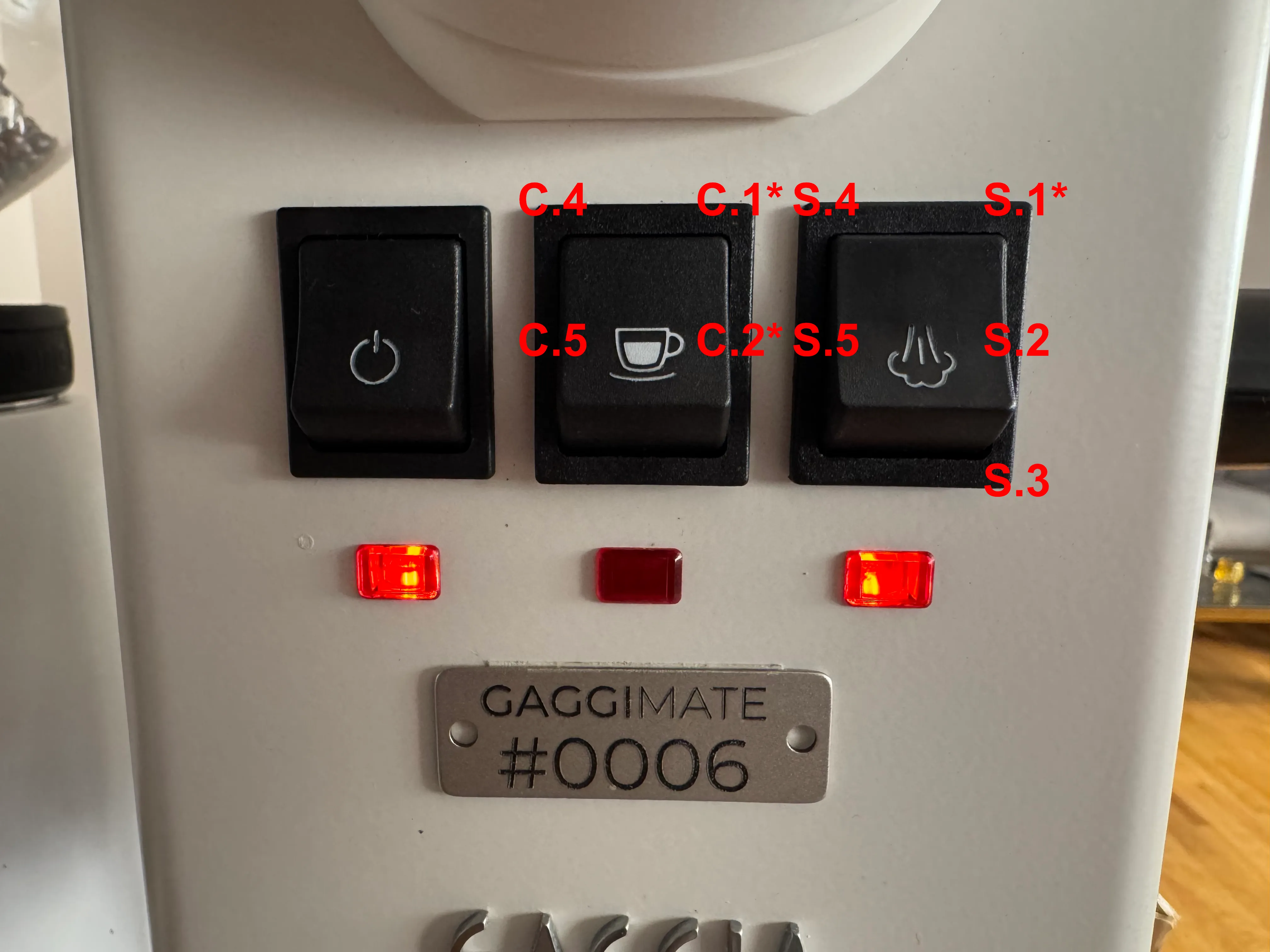 The picture above shows how the steam switch is wired by default. On a machine without the Eco PCB, the green wire labeled S.1 would be missing. On a US machine the double white will be on the other side. Follow the labeling and modifications of the switch positions regardless of that.